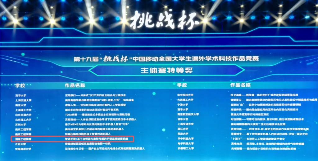值得一提的是,此前在“挑战杯”全国“揭榜挂帅”擂台赛中,学院另有两支团队聚焦产业实际需求,已斩获两项特等奖。连同本次主体赛的重大突破,充分彰显了学院在应用型人才培养与科研育人方面的扎实积累与坚定追求。未来,学院将持续深化产教融合与科教融汇,努力培育更多“以工许国”的优秀人才,为制造强国建设贡献湖工力量。
