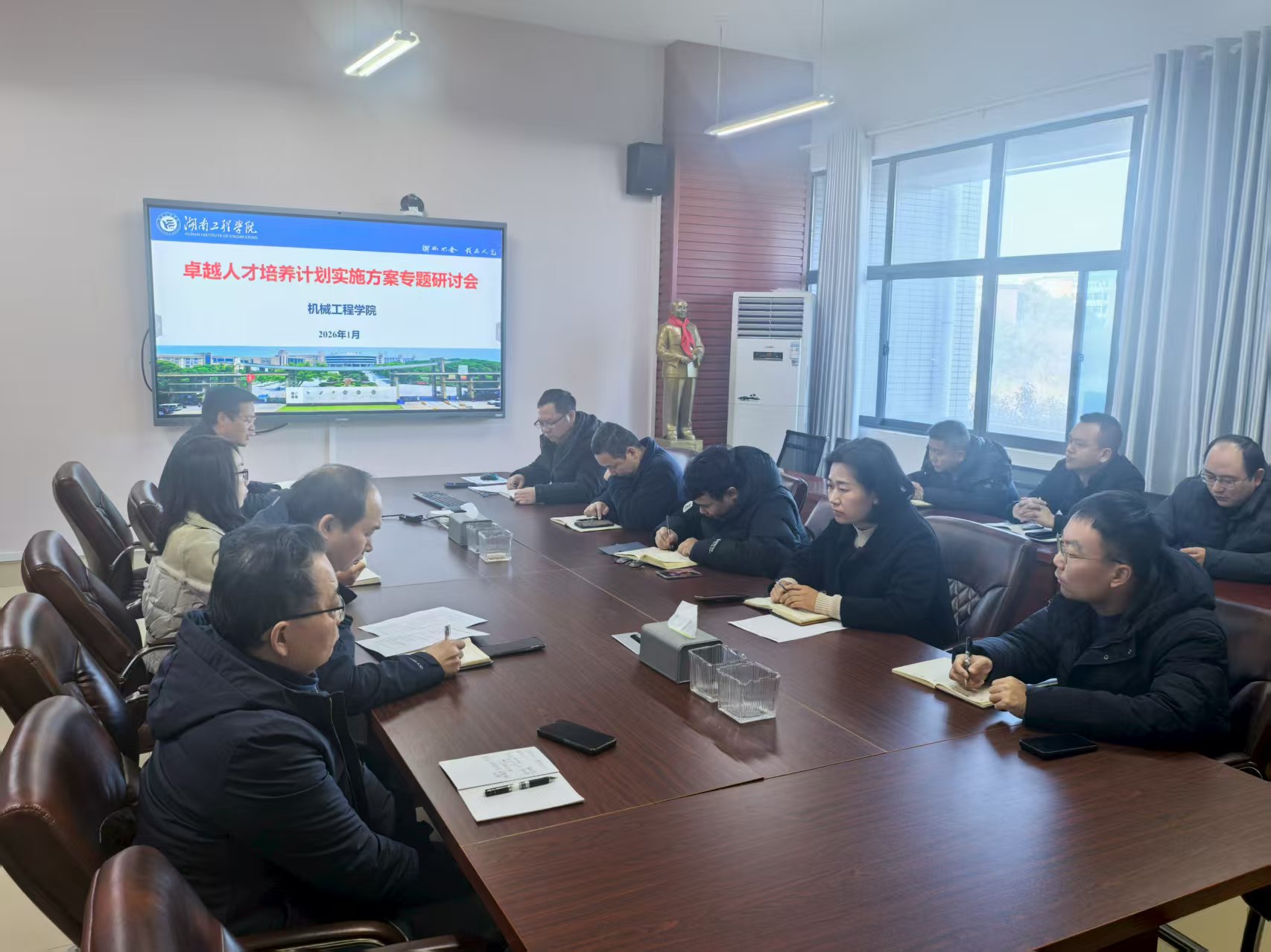 学院新工科办公室主任聂笃忠简要汇报了学院卓越计划的总体实施情况与面临的挑战。学院党委委员王高升就卓越计划实施相关工作分工进行说明,强调各专业系主任、副主任需深度参与卓越计划实施全过程管理。学院党委委员、机械设计制造及其自动化系主任关汗青和材料成型及控制工程系主任陈爽分别结合专业实际情况进行发言。随后,研讨环节中,教师代表谢骐教授回顾了学院卓越计划实施的发展历程,并建议卓越计划的实施必须严格对标工程教育专业认证标准,确保培养质量。董丽君、王震虎、李东锋等多位教师代表也纷纷建言,围绕双导师职责落实、实习过程管理、课程体系优化、考研学生实习安排等具体问题展开了热烈讨论。